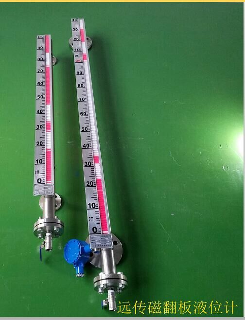 磁翻板液位計(jì)工作原理是基于磁耦合的物理特性,測(cè)量主體金屬內(nèi)腔管外的翻板箱受主體內(nèi)浮子(具有定向磁性源,按不同介質(zhì)和壓力針對(duì)研制)的作用促其翻板翻動(dòng)并顯示紅白顏色,并隨浮子的移動(dòng)指示不同的液面高度。在指示器左側(cè)配有醒目的刻度標(biāo)尺,從而使液位的指示顯得更加清晰。SUB-UHZ磁翻板液位計(jì)由本體、翻板箱(由紅、白雙色磁性小翻板組成)、浮子、法蘭蓋等組成,用于各類液體容器的液位測(cè)量。