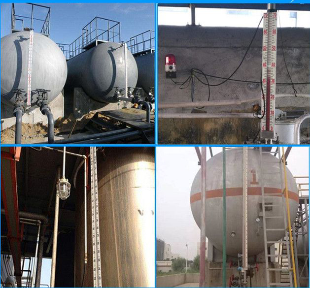 磁翻板液位計(jì)可用于各種塔、罐、槽、球型容器和鍋爐等設(shè)備的介質(zhì)液位檢測(cè)。該系列的液位計(jì)可以做到高密封,防泄漏和適用于高溫、高壓、耐腐蝕的場(chǎng)合。它彌補(bǔ)了玻璃板(管)液位計(jì)指示清晰度差、易破裂等缺陷,且全過(guò)程測(cè)量無(wú)盲區(qū),顯示清晰、測(cè)量范圍大。磁翻板液位計(jì)的零部件材料采用1Cr18Ni9Ti、316L、0Cr18Ni9Ti、1Cr18Ni9Ti襯PTFE(聚四氟乙烯)、PVC、PP等材料及進(jìn)口元件,具有的可靠性和抗腐蝕性。