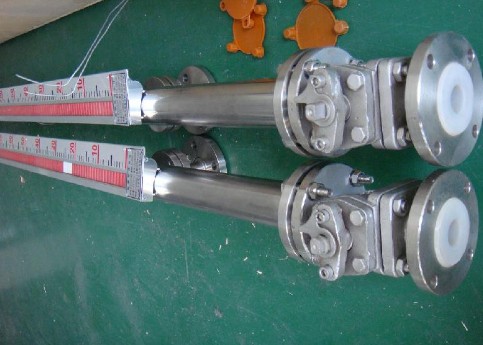 液位計根據浮力原理,浮子在測量管內隨液位的升降而上下移動,浮子內的永久磁鋼通過磁耦合作用,驅動紅、白色翻柱翻轉180’液位上升時,翻柱由白色轉為紅色,下降時,翻柱由紅色轉為白色,從而實現液位的指示。