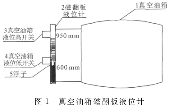 4月18日24:00,真空油箱油位低信號發出,密封油真空泵磁翻板無液位顯示,檢查確認浮子已在液位筒底部。此時真空油箱實際油位950mm。