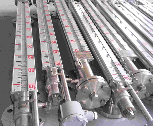 磁翻板液位計,是本公司引進、吸收國內外同類產品,并加以消化、吸收、提高,按原化學工業部頒布的磁性液位計生產的產品。可用于各種塔、罐、槽、球形容器和鍋爐等設備的介質液位測量。該磁翻板液位計系列可以做到高密封、防泄漏和適應高壓、高溫、腐蝕性條件下的液位測量。全過程測量無盲區,顯示醒目,讀數直觀。特別是現場指示部分,由于不與液體介質直接接觸,所以對高溫、高壓、高粘度、有毒、有害、強腐蝕性介質,更能顯示其優越性。因此,它比傳統的玻璃管式、板式液位計具有更高的可靠性、安全性、先進性、實用性。