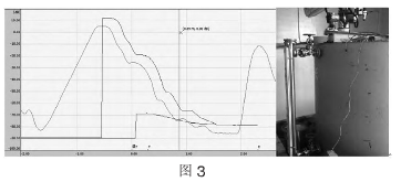 圖4為鹽酸配置槽正在加稀釋水且液位達到2.7m(量程3m)時回波包絡(luò)線圖。此時,測量值跳動明顯。分析原因:雷達液位計無明顯回波信號,且回波信號波動較大。該液位計在中低液位計加料時,測量值準(zhǔn)確、穩(wěn)定,但高液位加稀釋水時,加料口距離雷達液位計距離過近,飛濺起的水花對回波產(chǎn)生了較大的干擾,從而影響了測量。