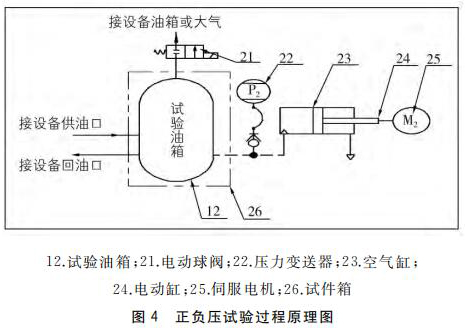 正負(fù)壓試驗(yàn)過(guò)程的原理見(jiàn)圖4,正負(fù)壓試驗(yàn)過(guò)程主要由電動(dòng)缸帶動(dòng)空氣缸往返運(yùn)動(dòng)來(lái)實(shí)現(xiàn)。