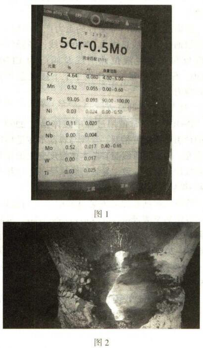 (1)對該段管線進行能譜檢測,確認該管線材質(zhì)為lCr5Mo,管線材質(zhì)無問題。