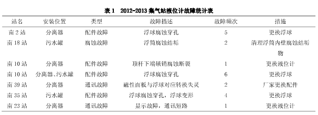 1、集氣站液位計運行現狀