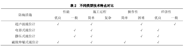 對以上幾種液位計,從性能、施工情況、操作性以及經濟性等方面進行技術比較,見表2: