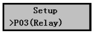 1) 在儀表正常工作時按擊Mode鍵進入?yún)?shù)設置菜單后按擊▼鍵選擇到P03(Relay)繼電器設置菜單,如右圖所示。