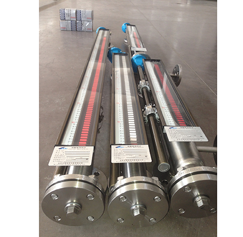 液位計根據(jù)浮力原理,浮子在測量管內(nèi)隨液位的升降而上下移動,浮子內(nèi)的永久磁鋼通過磁耦合作用,驅(qū)動紅、白色翻柱翻轉(zhuǎn)180’液位上升時,翻柱由白色轉(zhuǎn)為紅色,下降時,翻柱由紅色轉(zhuǎn)為白色,從而實現(xiàn)液位的指示。