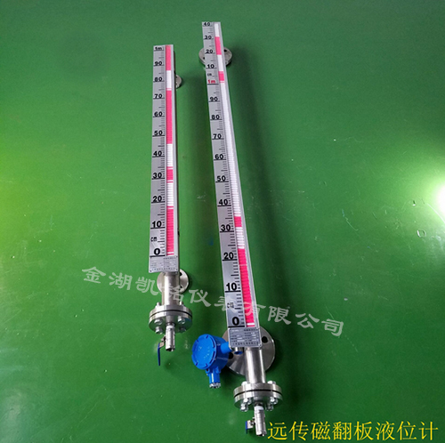 在磁翻板液位計管體的另一側可按用戶需要加裝電遠傳變送器,將液位高度轉換成標準電流信號輸出,以供液位信號輸出,以供液位信號遠傳至二次儀表進行指示控制與檢測。