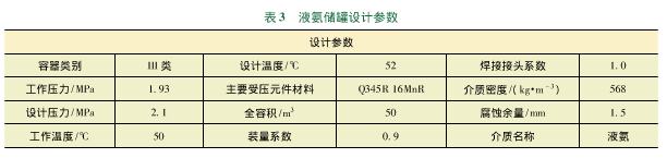 氨閥通常與凸面法蘭連接,按相應壓力,通常高一個等級。在對密封要求嚴格的部位,一般選用截止閥,特別在高低壓有可能互竄的部位,一定要選用截止閥。對于泄漏閥門,平時做好登記,大檢修時集中進行更換。在更換前,必須對閥門逐臺進行水壓試驗,確保水壓試驗合格;對于容器底部的排凝閥,一般在檢修結束之后,在閥后加盲板,將排凝線盲死。車間新建酸性水汽提裝置液氨儲罐設計參數見表3。